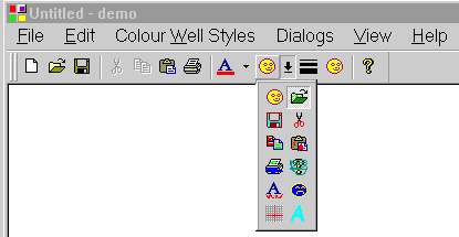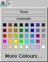 If you use the Stingray Objective Toolkit (http://www.stingsoft.com), you get the additional benefits of drop down button classes which are fully integrated with the library and add considerably to the function of the drop down well controls. There is also a colour drop down selection button (the button is labelled "A" above) which reflects the currently selected green colour. You can see that the colour bar below the "A" turns red (below) after the red colour has been selected.