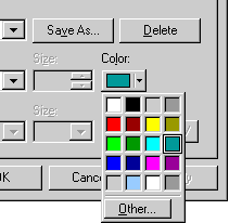 Figure 1. A screen shot from the Windows Control Panel | Display | Appearance property page.Though well controls with the "sunken" appearance look great in dialog boxes / property pages, it is difficult to handle UI interaction within Windows Guidelines.